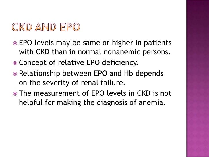 Discuss the relationship between neurologic changes and chronic renal failure. Metabolic acidosis occurs in esrd because the. The reader is referred to these guidelines as well as the european renal best practice (erbp) for anaemia in ckd and the kdoqi guidelines for. In patients with chronic kidney disease, normochromic normocytic anaemia mainly develops from decreased renal synthesis of erythropoietin.